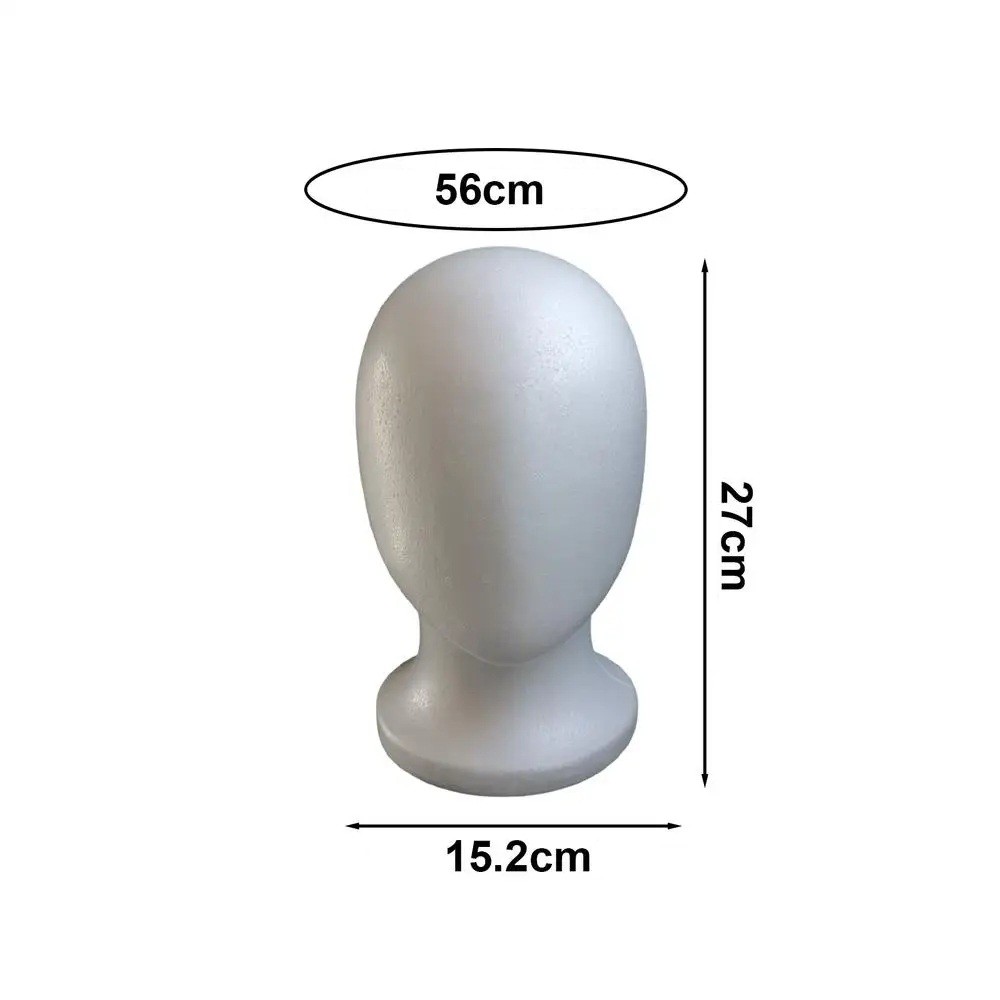 Stativ pentru peruci, pălării, căciuli 27 x 15,2 cm Cap din polistiren, circumferința capului 56 cm