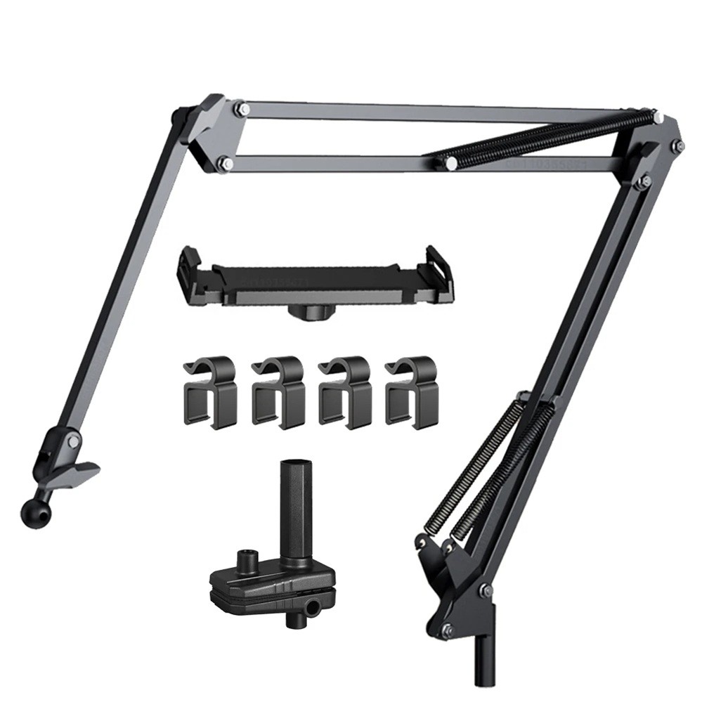 Suport ajustabil pentru tabletă la pat cu braț lung 4–12,9" Suport metalic rotativ pentru vizionarea confortabilă a filmelor și citit fără a ține