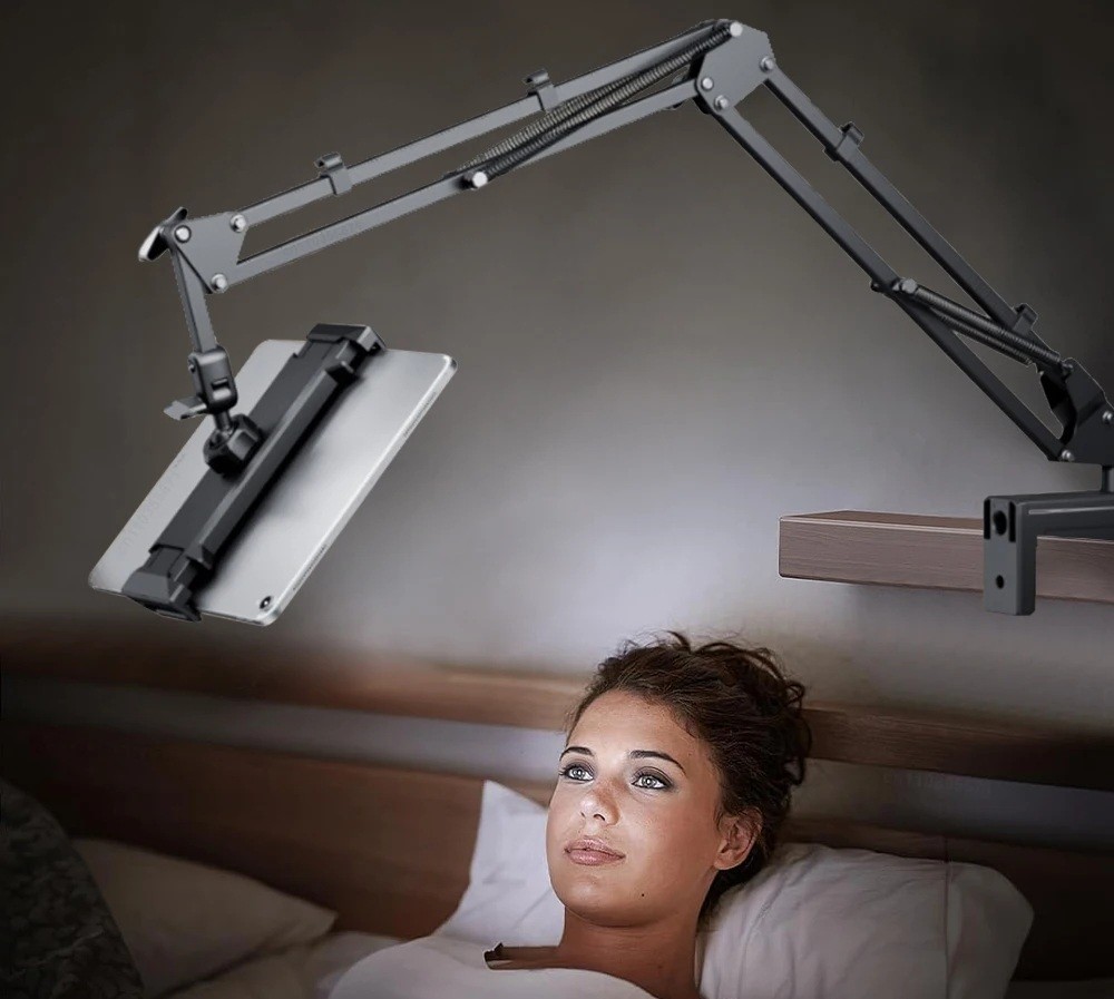 Utilizarea este foarte versatilă – suportul poate fi fixat la pat pentru vizionare confortabilă seara înainte de culcare, la birou pentru apeluri video sau pe canapea, când doriți să vă bucurați de un film fără a ține dispozitivul. Datorită brațului lung, îl puteți folosi și în situații în care aveți nevoie de mâini libere, de exemplu, în timpul gătitului, jocurilor pe consolă sau studiului.