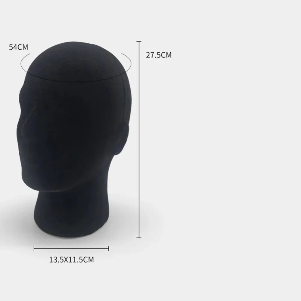 Suport negru pentru peruci în formă de cap 27,5 x 13,5 x 11,5 cm Cap din spumă pentru ochelari, pălării, curățare ușoară Circumferința capului 54 cm