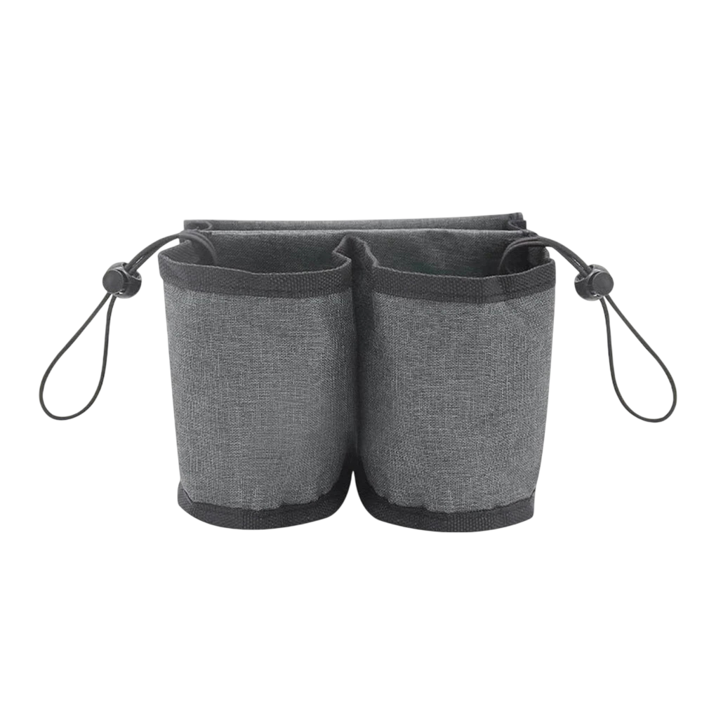 Suport pentru pahare pe mânerul valizei, capacitate dublă 16×8×12 cm, țesătură Oxford, negru-gri, organizator pentru băuturi pentru bagaje