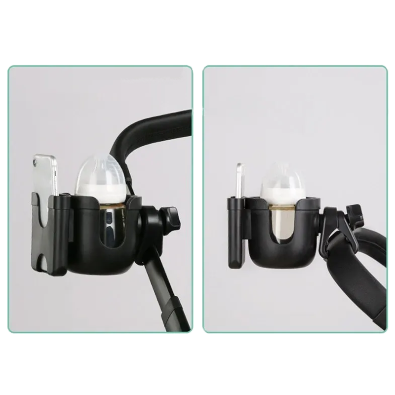 Acest suport universal 2 în 1 aduce confort și practică pentru fiecare părinte care petrece timp în aer liber cu copilul. Datorită construcției stabile, asigură că sticla și telefonul nu se vor mișca nici pe un teren accidentat. Designul său elegant negru se potrivește cu orice cărucior și are un aspect stilat și discret.