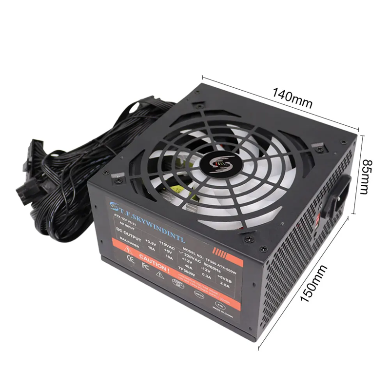 Sursă de alimentare RGB ATX 3.0 500W pentru carcasă de computer 100-240V ATX 12V putere stabilă pentru configurații PC de gaming 10x12,5x6,4 cm