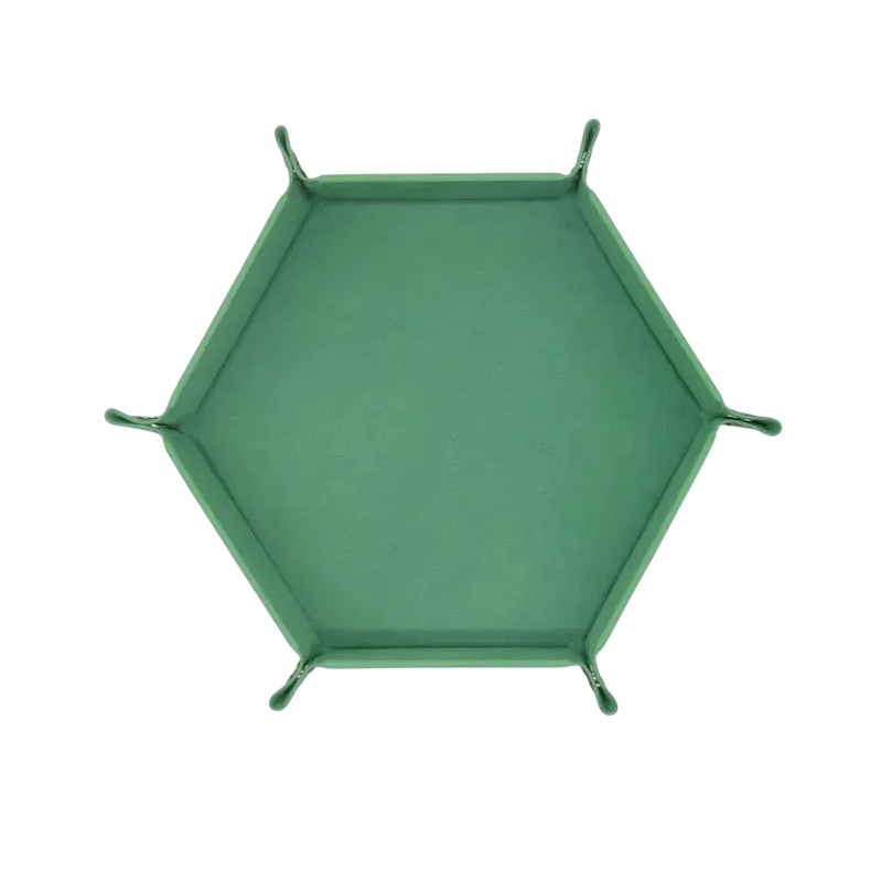 Tăvița hexagonală de joc este un accesoriu practic pentru toți iubitorii de jocuri de masă și RPG. Serveste ca un spațiu sigur pentru aruncarea zarurilor și pentru depozitarea clară a figurilor, jetonelor sau a altor accesorii de joc. Datorită construcției pliabile, poate fi ușor pliată și transportată, fără a ocupa loc inutil. Suprafața din piele artificială are un aspect elegant și protejează masa de joc de deteriorare. Tăvița este concepută pentru a îmbunătăți confortul în timpul jocului și pentru a menține suprafața de joc clară.