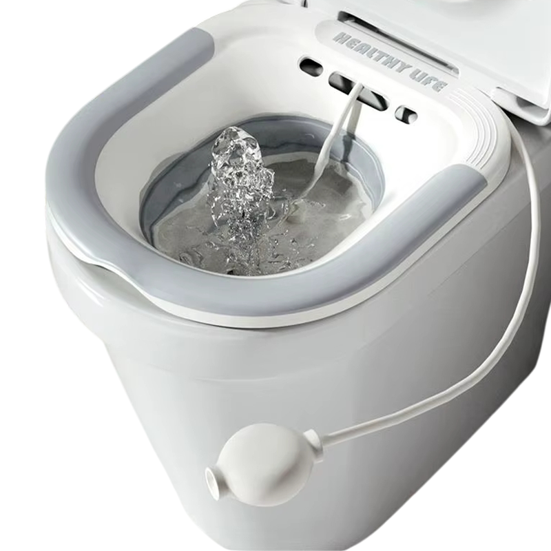 Toaletă pliabilă practică cu furtun și oplachitor, potrivită pentru femei însărcinate și pacienți cu hemoroizi. Ușor de utilizat și întreținut igienic. Descrierea completă