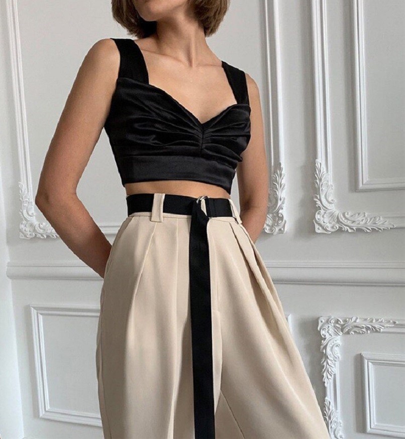 Top crop din satin pentru femei, cu decolteu mare