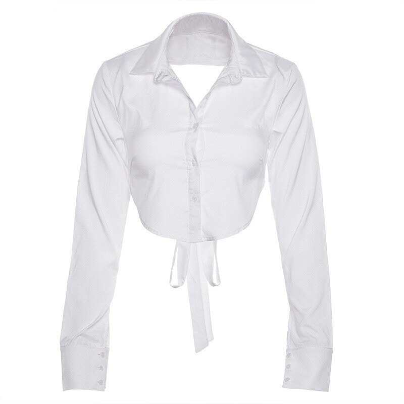 Top crop pentru femei, cu cravată pe spate