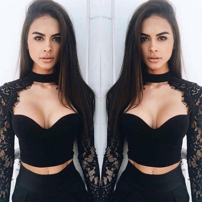 Top crop pentru femei cu mâneci din dantelă