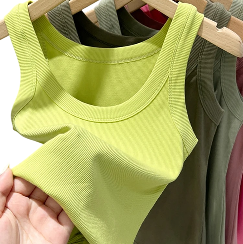 Top damă cu decolteu rotund și bretele late, top din bumbac simplu pentru purtare confortabilă zilnică