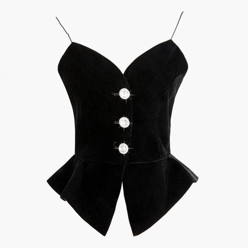 Top negru pentru femei, cu bretele spaghete
