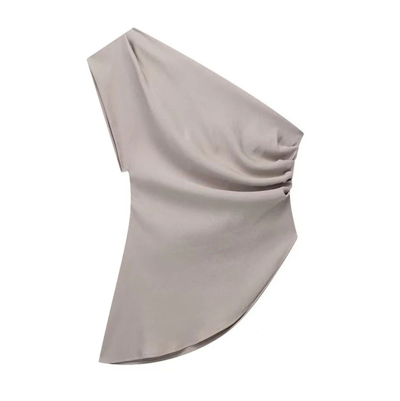 Top elegant de damă, cu croială asimetrică și un singur mânec, ideal pentru evenimente de seară, petreceri sau combinații la modă pentru oraș și în vacanță. Descrierea completă
