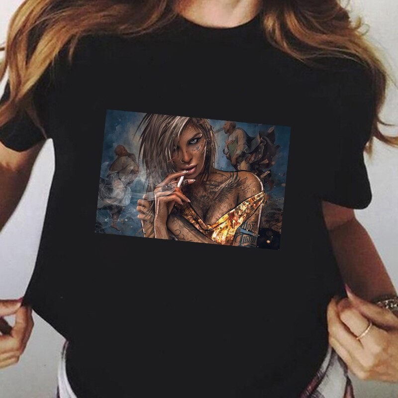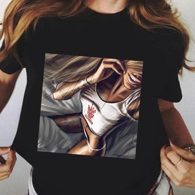 Tricou negru pentru femei cu imprimeu A1195