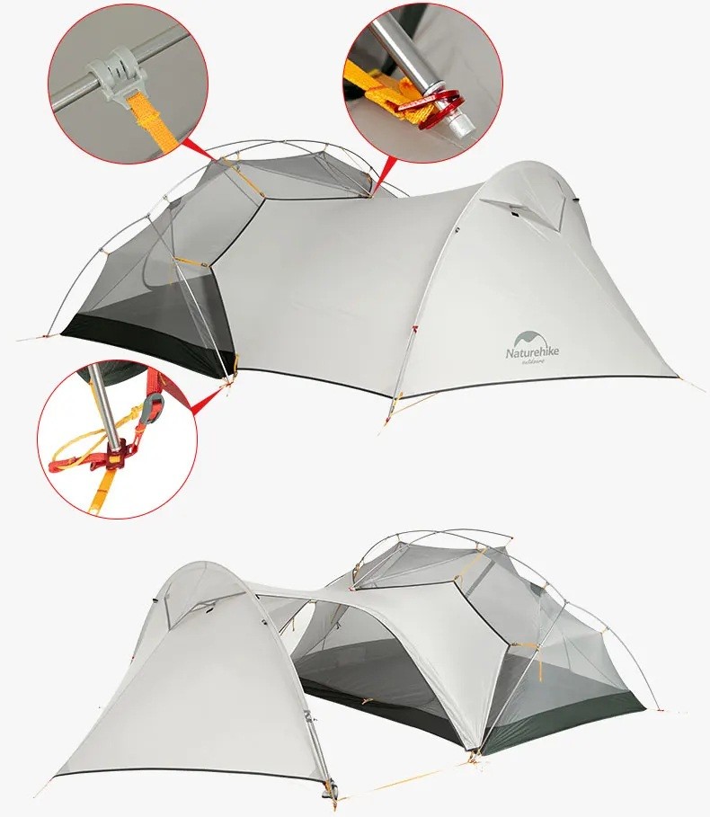 Marcajul 20D al nylonului indică grosimea fibrelor individuale ale materialului utilizat. Comparativ cu 15D, 20D este ușor mai gros și mai rezistent, ceea ce îl face potrivit pentru turiști care au nevoie de un material mai robust și planifică utilizarea cortului și în teren mai dificil. Cortul are o construcție cu două straturi, care îmbunătățește semnificativ ventilația și reduce condensarea umidității în interior. Acoperișul dispune de un coloana de apă 4000 mm, ceea ce oferă o protecție fiabilă chiar și în ploi îndelungate și averse puternice. Construcția interioară este proiectată pentru a fi rapidă la montare și pentru a asigura stabilitate chiar și în vânt puternic.
