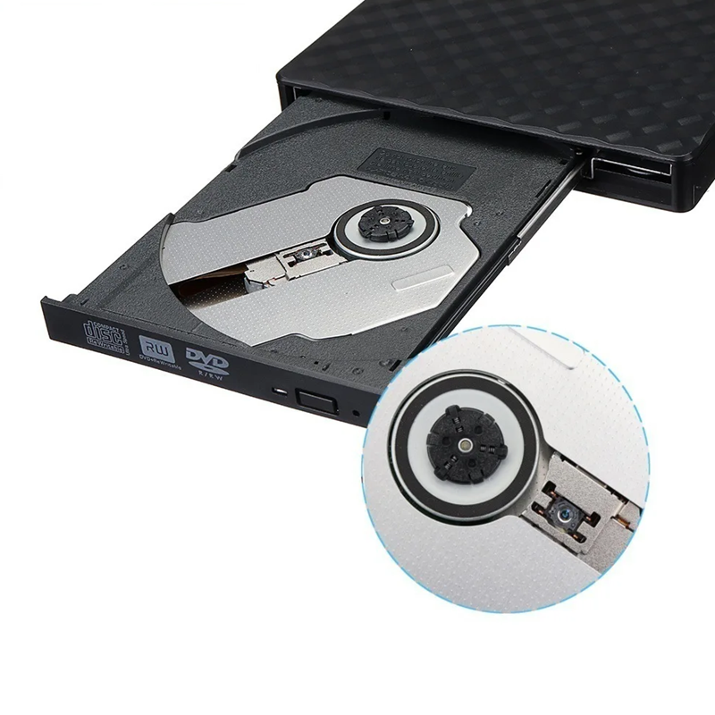 Unitate externă CD/DVD 13,8 x 14,2 x 1,8 cm USB 3.0 Slot pentru card SD și TF Plug and Play Scriitor cu alimentare externă cablu de 20 cm