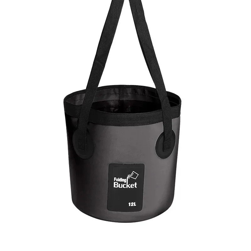 Practică vădră pliabilă cu capacitate de 12 l și mânere. Soluție compactă pentru pescuit, camping și călătorii, ușor de transportat. Descrierea completă