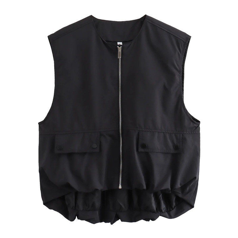 Vesta damă practică și stilată cu buzunare și fermoar. Material ușor din poliester, croi confortabil și design elegant simplu pentru ținuta de zi cu zi. Descrierea completă