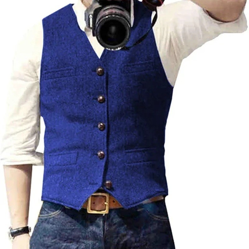 Vestă elegantă pentru bărbați cu buzunare și buzunar pe piept Vestă de ocazie simplă cu nasturi