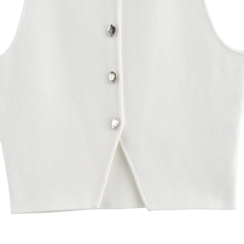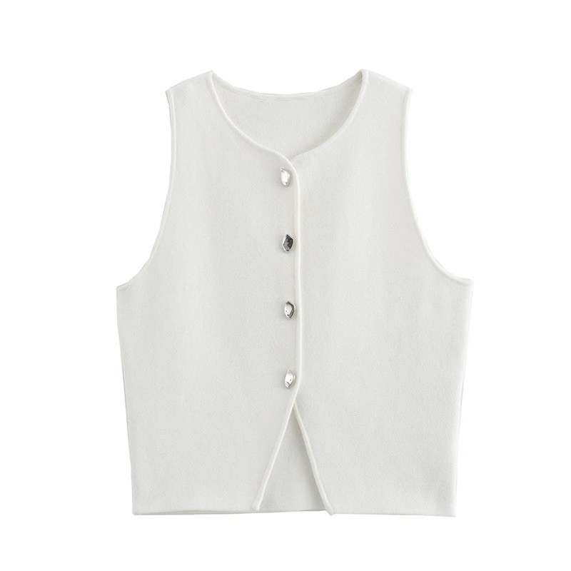 - Vesta elegantă pentru dame cu decolteu rotund pentru un aspect atemporal