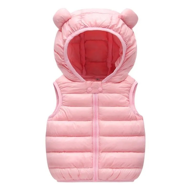 Vesta pentru copii din puf cu glugă și urechi Vesta de iarnă călduroasă din bumbac cu fermoar Îmbrăcăminte exterioară uni pentru băieți și fete Stil de toamnă și iarnă