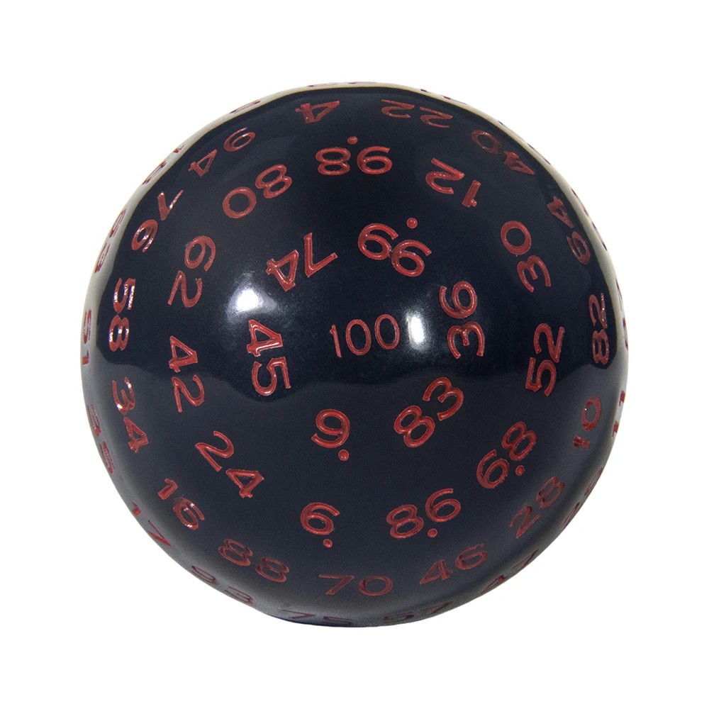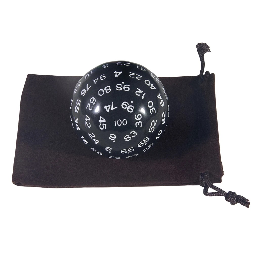 Zarul D100 este alegerea ideală pentru jucătorii care doresc o soluție clară pentru aruncările procentuale într-un singur element de joc. Datorită fabricării din acril, are un aspect estetic și este potrivit pentru utilizare regulată. Punguța inclusă asigură transportul ușor și protecția zarului.