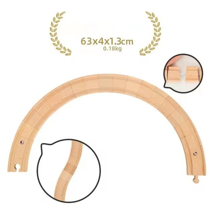 Această zătață mobilă din lemn este unul dintre cele mai versatile elemente pentru extinderea căii ferate pentru copii. Datorită construcției sale flexibile, permite modelarea liberă a trasei și crearea de curbe cu diverse radiani, pe care căile fixe obișnuite nu le pot oferi. Dimensiunea 63 x 4 x 1,3 cm oferă o lungime suficientă pentru o direcție lină a trasei și adaptarea la celelalte elemente ale căii. Întregul element este fabricat din lemn de calitate, care este solid, rezistent și plăcut la atingere. Prelucrarea netedă și precisă asigură o mișcare fără probleme a trenulețelor fără blocaje.