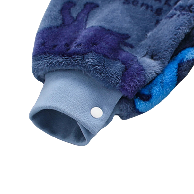 Overal bleu confortabil din flanel moale cu model de dinozauri. Călduros, respirabil și ideal pentru sezonul de primăvară și iarnă pentru bebeluși. Descrierea completă